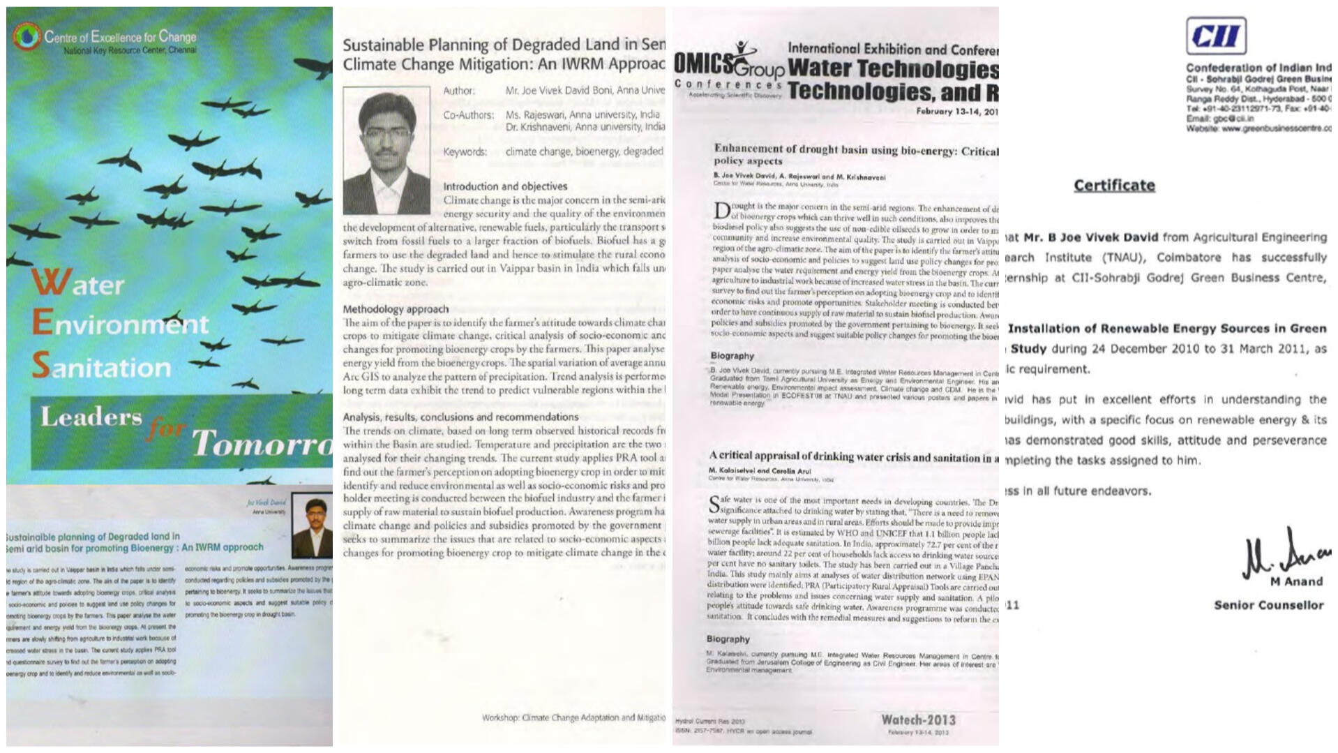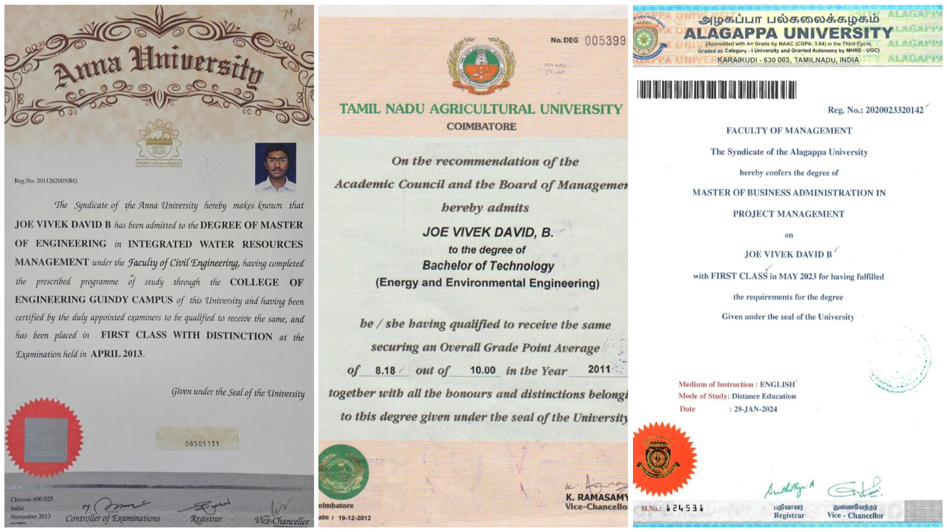 | B.Tech. Energy & Environmental Engineering | Tamil Nadu Agricultural University, India | 2011 |